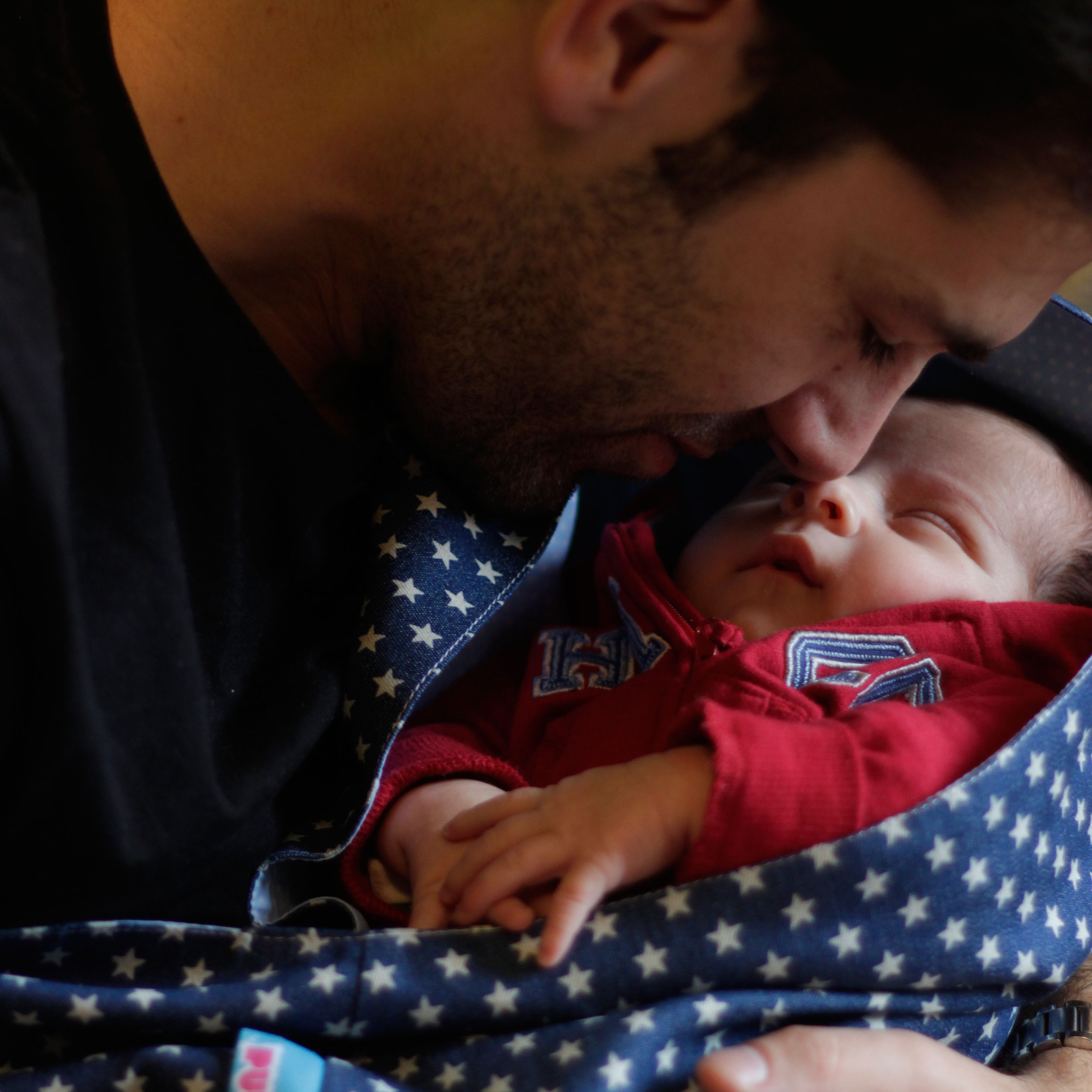 O colo do Sling é ideal para descobrir o mundo enquanto sente o calor, a respiração e o bater do coração da mãe, pai ou portador.