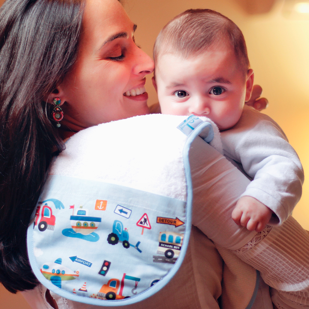 Depois de comer a Pulguinha precisa de arrotar. Levante-a, apoiando sempre a cabeça, e coloque-a contra o seu peito/ ombro, para que possa arrotar. Tenha atenção para não exercer demasiada pressão, já que pode provocar refluxo e acabar por bolsar. Ainda que a posição seja a ideal a Pulguinha pode sempre babar ou bolsar, mais ainda se estiver já a beber de biberão que implica uma maior ingestão de ar. Para manter a sua roupa limpa descubra o babete que se ajusta ao seu ombro e que é feito em turco absorvente. Porque nem tudo pode ser prevenido, esta é a melhor forma de remediar.