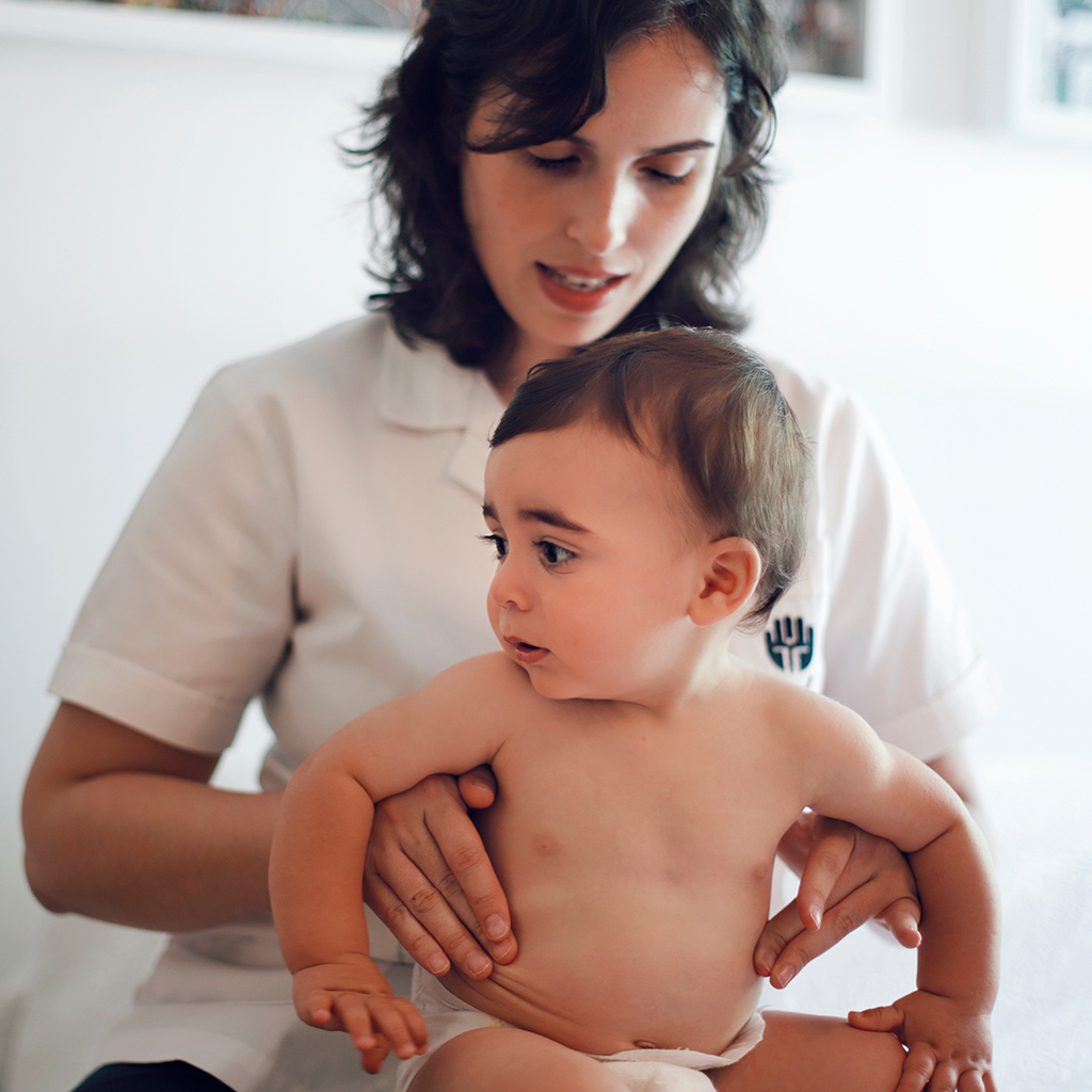 A osteopatia pediátrica consiste na avaliação e tratamento de todas as estruturas ósseas, articulares e miofasciais e a sua biomecânica, dando especial atenção à zona do crânio.